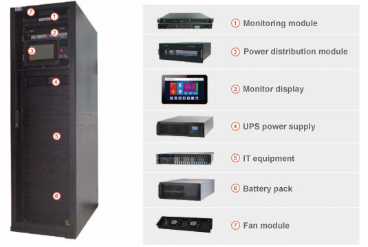 Integrated data center SDC300-s solution integrated precise power distribution system , precise refrigeration system , UPS, power and environment mornitoring system as a whole solution, prefabricated in factory,realize site installation, plug and play, rapid deployment, minimize the data center as a single cabinet, be widely used in bank branches, schools, highways, supermarket chains, etc.